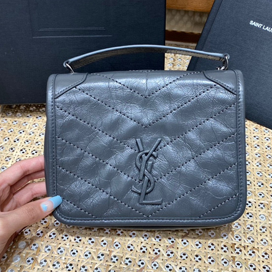 Saint Laurent LE 5 A 7 SOFT SMALL Hobo Bag Grey 713938
