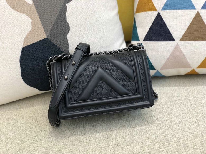 Small Boy Chanel Calfskin Flap Bag Black A67085 - Calfskin Size: W20 cm (1" = 2.54cm) It come with serial numbers, card, dust bag and care booklet.