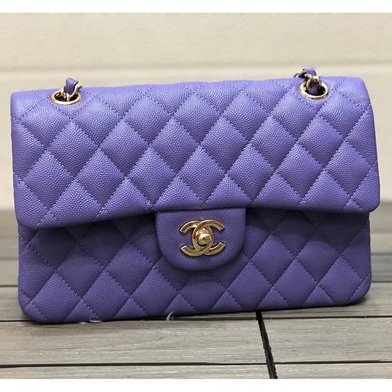 Small Classic Chanel Grain Calfskin Flap Bag Blue A01117