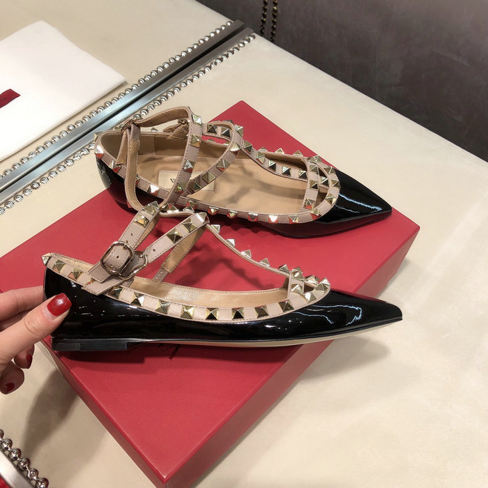 Valentino Patent Rockstud Caged Ballet Flat Black VS03083 Patent Leather Leather Sole Heel Height: flat/10cm/6.5cm Size: Euro 34~42