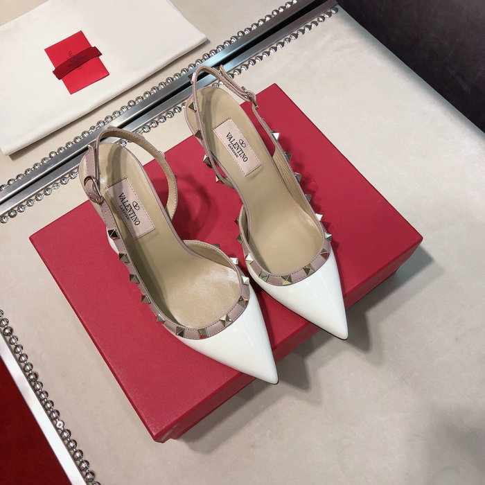 Valentino Patent Slingback Pump White VS03086 Patent Leather Leather Sole Heel Height: 8.5cm/5cm Size: Euro 34~42