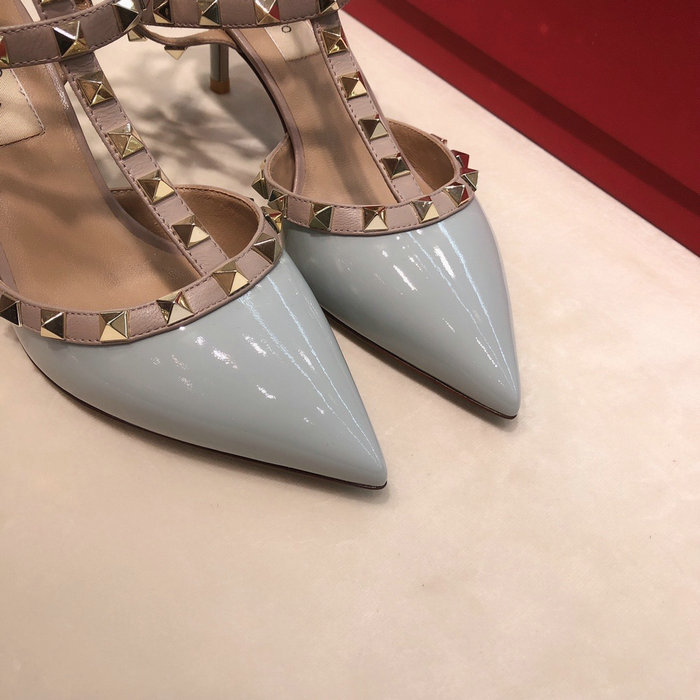 Valentino Rockstud Ankle Strap Patent Leather Pump Skyblue VS03081 Patent Leather Leather Sole Heel Height: 6.5cm/10cm/flat Size: Euro 34~42
